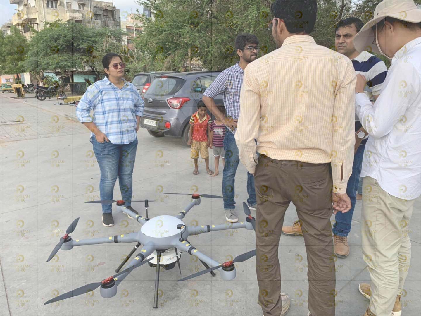 In 2019, the work team went to India to show the customer the operation process of the drone, and carried out a test flight outside, with satisfactory results and completed delivery.